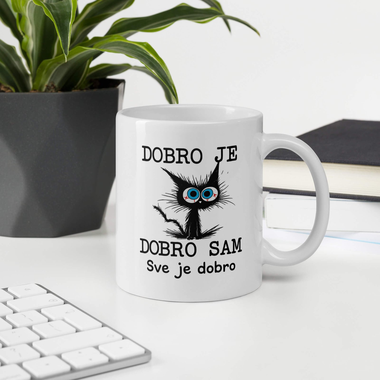 Bilo da pijete jutarnju kafu, večernji čaj ili nešto između — ova šolja je za vas! Čvrsta je, sjajna i ima živopisan print koji može izdržati mikrotalasnu i mašinu za suđe.